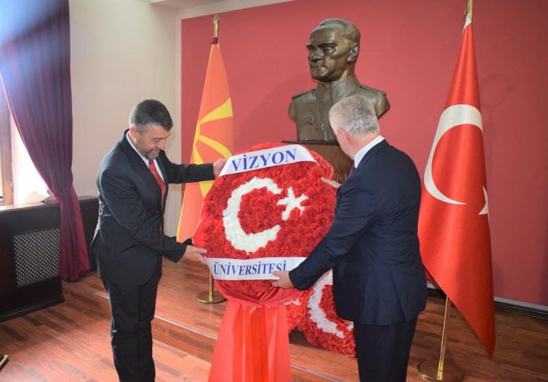 Anma programı Resmi protokol, Atatürk anma merasimi ve panelden oluştu. Saat 9.05 te Atütürkü manevi huzurunda saygı duruşuyla başlanan programda Uluslararası Vizyon Üniversitesi Rektörü Prof. Dr. Ahmet Vecdi CAN protokol konuşmasını gerçekleştirdi. Protokol konuşmalarından sonra Atatürk’ün anısını yazılan birkaç şiir Uluslararası Vizyon Üniversitesi öğrencileri tarafından seslendirildi. Atatürkü anma merasiminin devamında  Uluslararası Vizyon Üniversitesi Rektörü Prof. Dr. Ahmet Vecdi CAN ve Kurucu Rektörü Prof. Dr. Fadıl HOCA önderliğinde Atatürk’ün anı odasına çelenk bırakıldı.